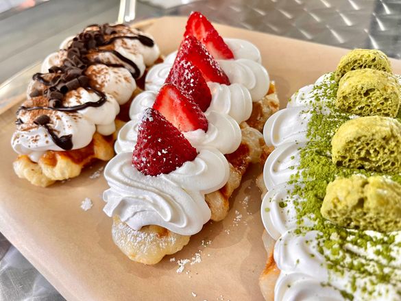 Dessert options abound in Buena Park, from character-themed donuts at Modoo Donuts to creamy, vegan shaved snow at DZERT. Kids can explore whimsical soft serves at Nobibi, including the Dream Cloud, where ice cream is wrapped in fluffy cotton candy. Families can indulge at award-winning Honeymee, known for its kosher ice cream topped with natural honey, or savor the legendary boysenberry pie at Knott's Berry Farm Bakery. For a fun twist, Don Melt serves crispy croffles—a combination of a waffle and a croissant—topped with a variety of flavors like strawberry, blueberry, and matcha, perfect for adventurous little dessert lovers.