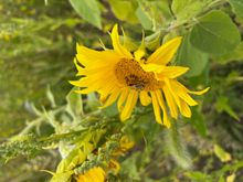 The beauty is in the little things. The single fall amber leaf is surrounded by the summer green leaves. The red crabapples are so ripe that they’re straining to stay on the tree for one more day. The sunflower spreads its golden petals to welcome a single industrious bee collecting its nectar and pollen.