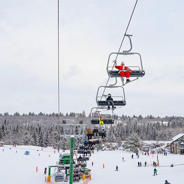 Rabbit Hill is the largest of Edmonton's in-city ski areas, with 11 groomed runs across roughly 40 acres and a lift network that includes a triple chairlift, rope tows, T-bars and magic carpets. With a vertical drop of approximately 98 metres, it offers the greatest elevation change among the city's hills along with a well-established terrain park and tubing area.