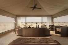 Step onto your private deck and feel the call of the wild—sweeping views of the waterhole stretch before you, with wildlife roaming just metres away. It's an exhilarating front-row seat to nature's spectacle, perfect for spotting a tower of giraffes or a dazzle of zebras grazing nearby. Each luxury safari tent offers an outdoor deck furnished for relaxation, a spacious lounge area, and a king or twin bed, with two accessibility tents available. Completing the experience are an ensuite bathroom and private dressing room for your comfort.